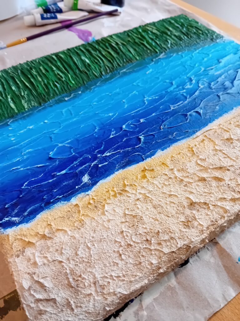 In den Jahren 2004 und 2005 habe ich jeweils an einem mehrtätigen Kunstkurs teilgenommen, in dem ein paar Acrylbilder entstanden. Neben dem Kunstunterricht in der Schule hatte ich mir bis dahin viel selbst beigebracht.