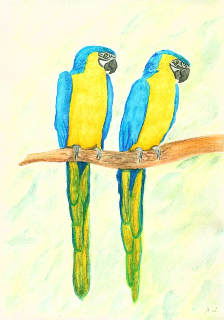Im Laufe meiner Jugend habe ich mich auch an unterschiedlichen Medien probiert. Vor allem Aquarellbuntstifte und Acrylfarben hatten mein Interesse gefesselt. Einzelne Bilder habe ich auch mit Aquarellfarben oder Mixed Media gestaltet: